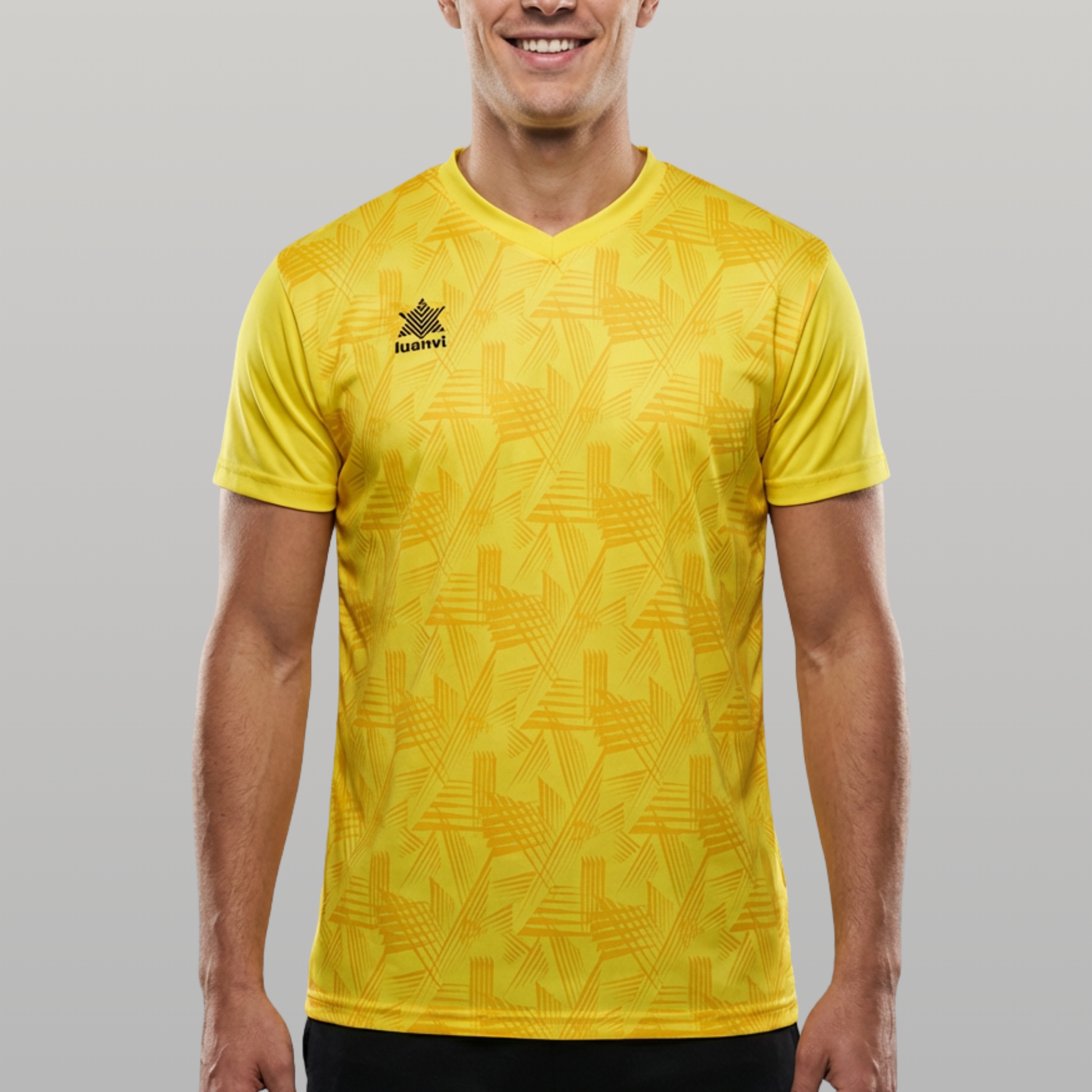 The Luanvi PORTO technical t-shirt is designed for teams that want a striking design with the performance of a high-performance garment. Its all-over geometric print fabric and V-neck give it a modern style, perfect for both competition and training.