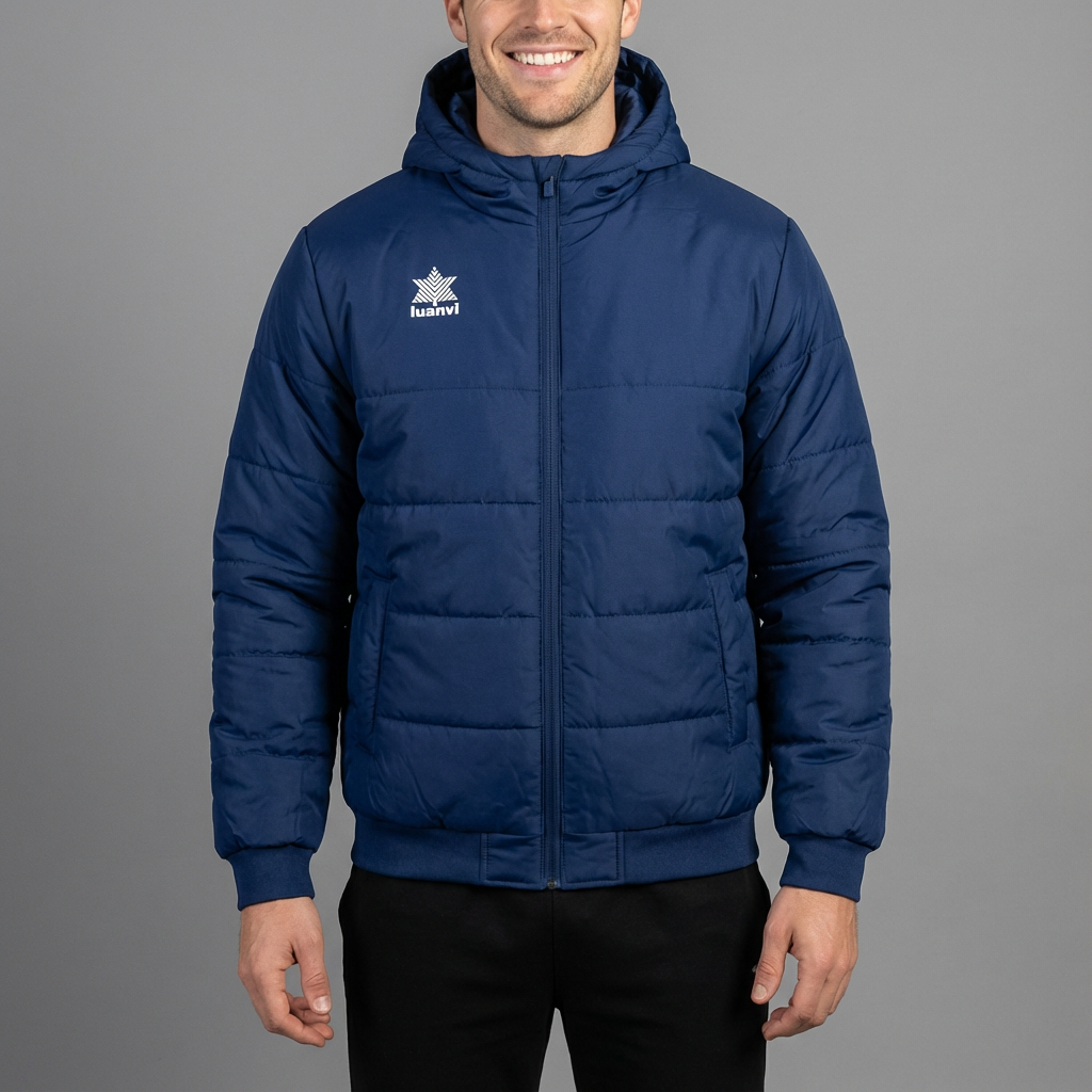 El anorak Luanvi ALASKA está pensado para los días de frío serio en el campo, tanto para jugadores en banquillo como para cuerpo técnico. Su diseño acolchado con capucha integrada, corte recto y largo hasta la cadera ofrece una protección muy completa frente al viento y la lluvia ligera, sin renunciar a la movilidad necesaria en el día a día del club.