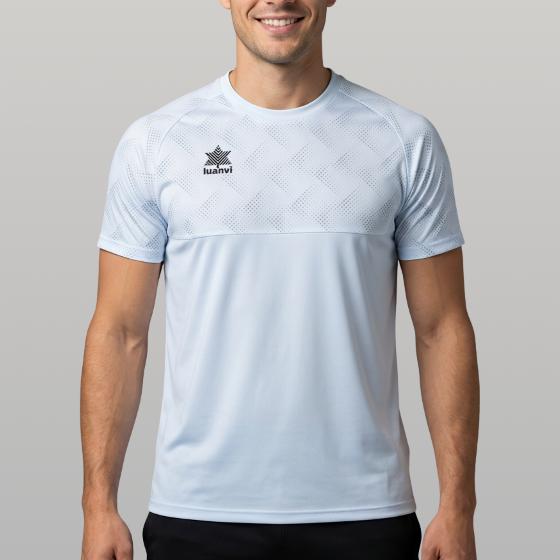 Camiseta técnica Luanvi MIAMI, perfecta para equipos que quieren un plus de diseño sin renunciar al rendimiento. Su parte superior incorpora un estampado geométrico muy actual que aporta personalidad a la equipación, mientras que el corte deportivo y el cuello redondo garantizan comodidad y libertad de movimiento tanto en entrenamientos como en partido.