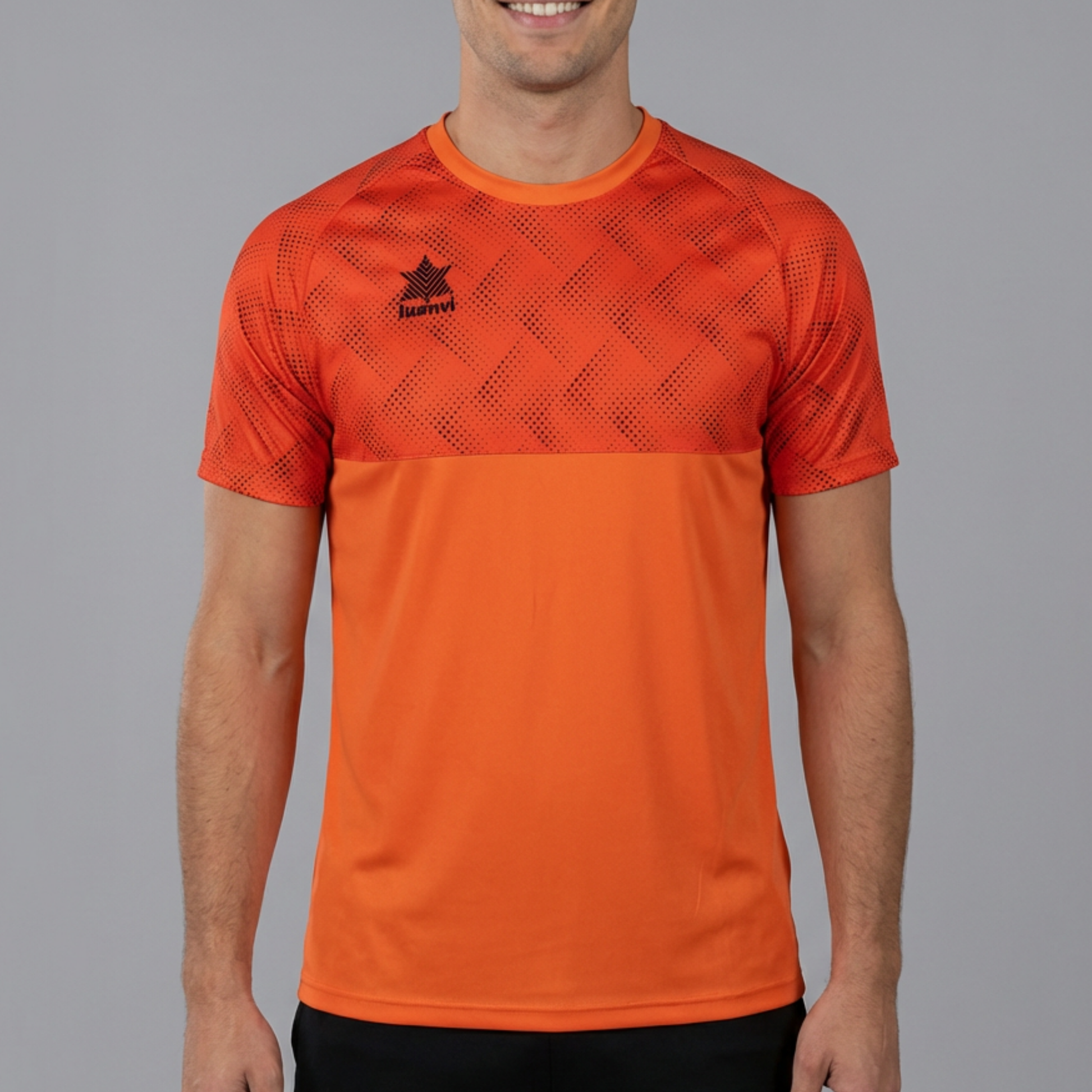 Camiseta técnica Luanvi MIAMI, perfecta para equipos que quieren un plus de diseño sin renunciar al rendimiento. Su parte superior incorpora un estampado geométrico muy actual que aporta personalidad a la equipación, mientras que el corte deportivo y el cuello redondo garantizan comodidad y libertad de movimiento tanto en entrenamientos como en partido.