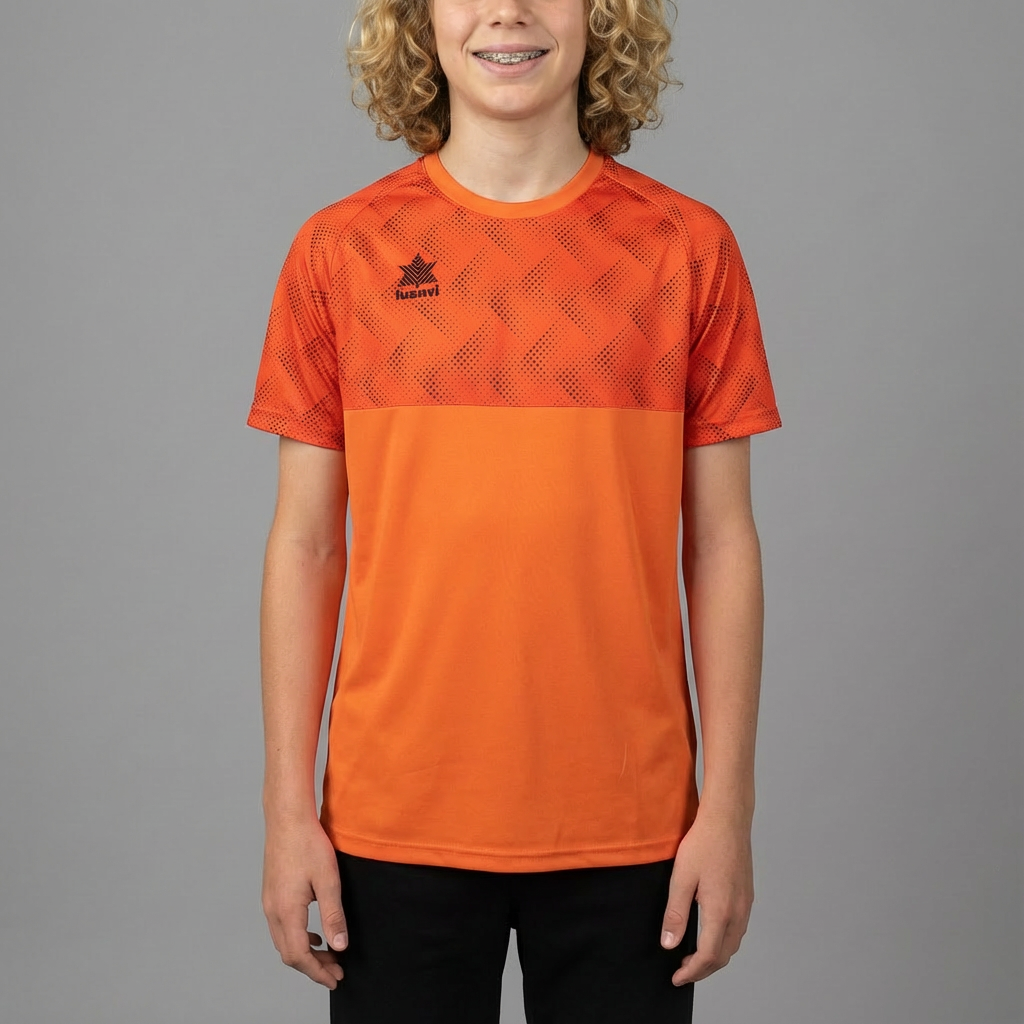 Camiseta técnica Luanvi MIAMI, perfecta para equipos que quieren un plus de diseño sin renunciar al rendimiento. Su parte superior incorpora un estampado geométrico muy actual que aporta personalidad a la equipación, mientras que el corte deportivo y el cuello redondo garantizan comodidad y libertad de movimiento tanto en entrenamientos como en partido.