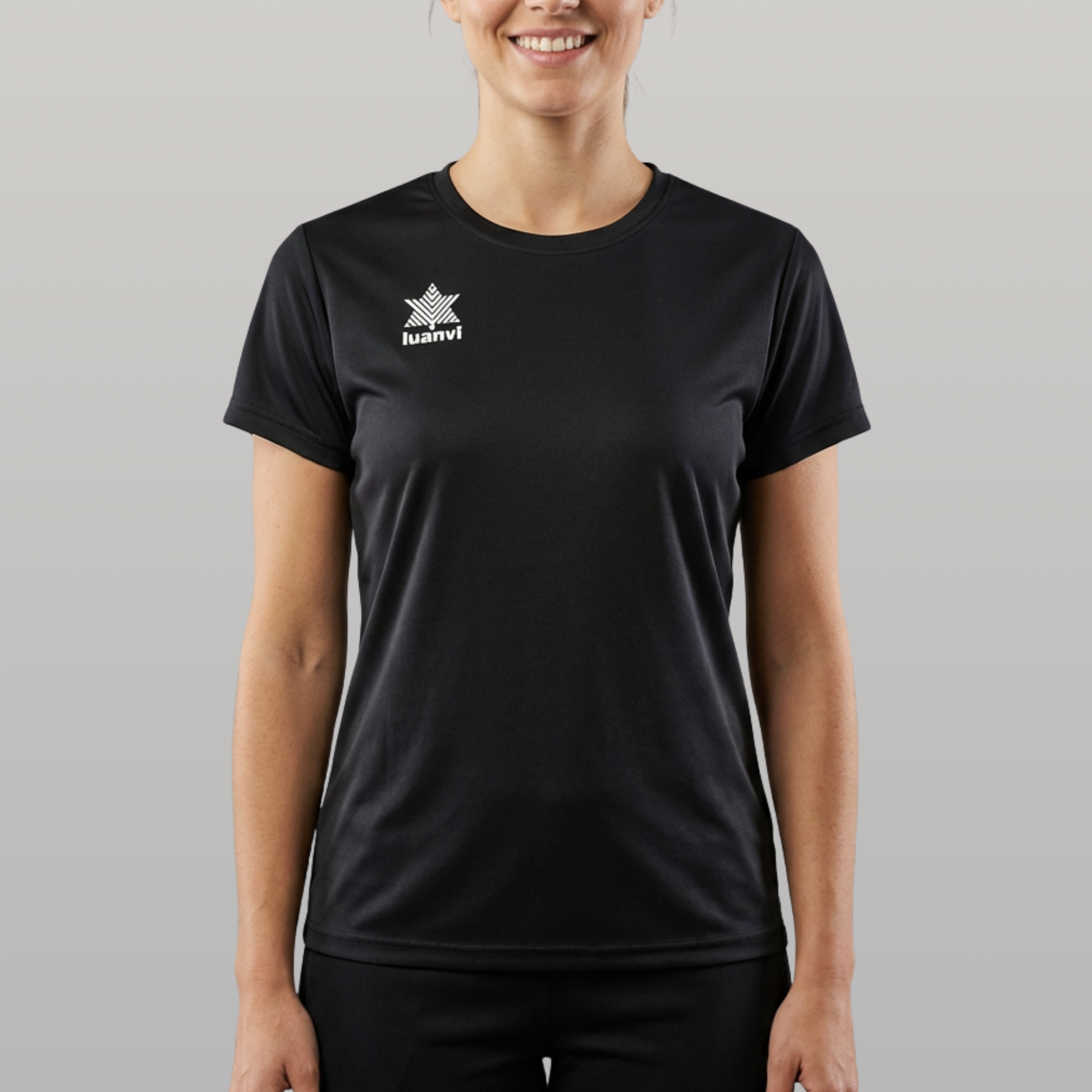 Camiseta técnica Luanvi POL, diseñada específicamente para ellas. Su corte femenino entallado se adapta al cuerpo sin oprimir, ofreciendo una silueta estilizada y máxima comodidad tanto en entrenamientos como en competición o actividades outdoor.