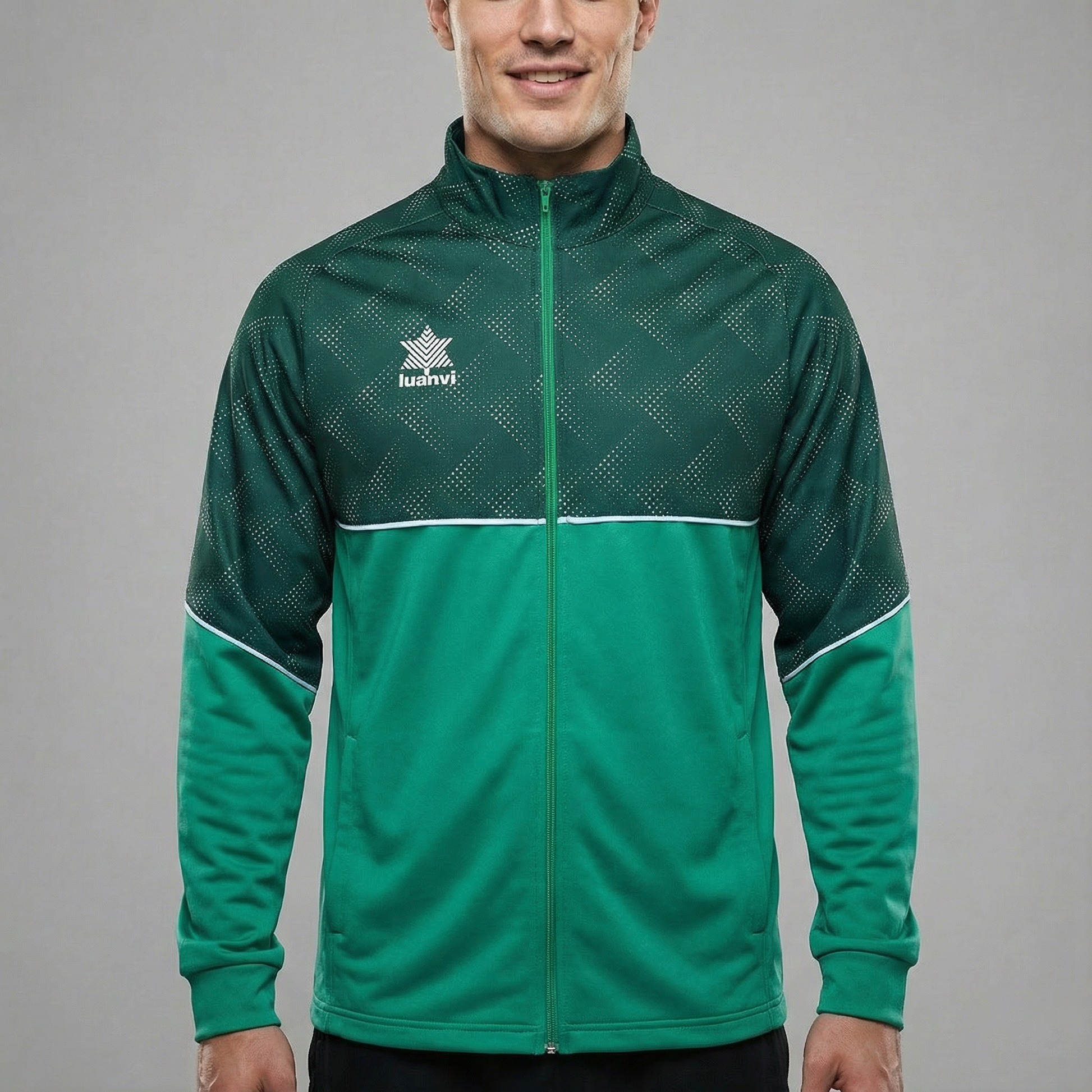 Chaqueta técnica Luanvi 28504 MIAMI, ideal para completar el chándal de tu equipo con una prenda llamativa y muy funcional. Su diseño con cremallera completa y cuello alto la hace perfecta para entrenamientos, viajes, calentamientos y para el día a día del club, manteniendo siempre una imagen moderna gracias al panel superior con gráfico deportivo.