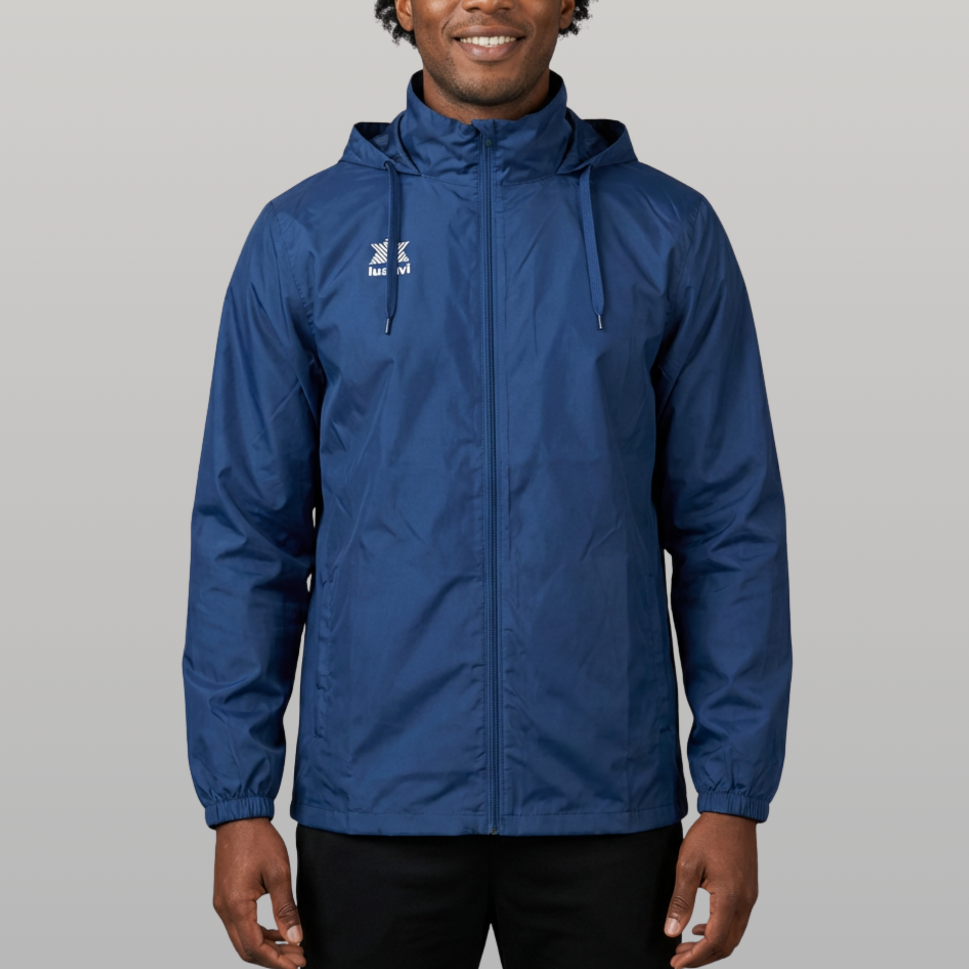 Chubasquero Luanvi KIEV, diseñado para proteger a jugadores y staff en entrenamientos, partidos y desplazamientos en días de lluvia o viento. Su diseño sencillo y limpio, con capucha y cremallera completa, lo hace muy fácil de combinar con cualquier equipación del club.