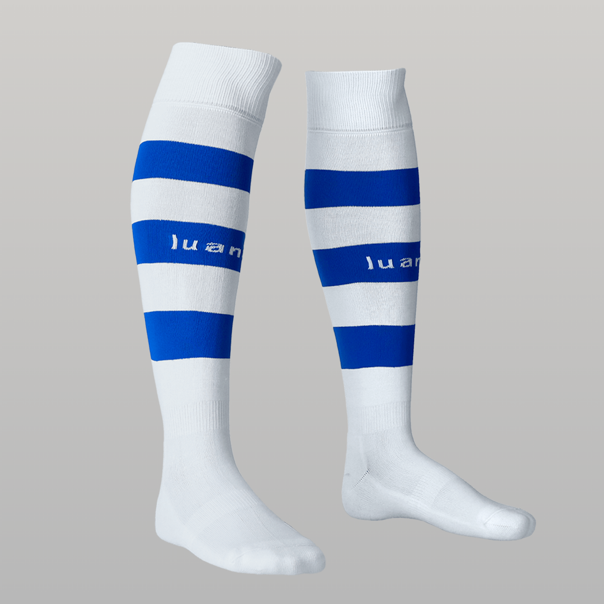 Medias técnicas Luanvi Listada, pensadas para equipos que quieren un toque clásico de franjas en su equipación sin renunciar al rendimiento. Su diseño de caña alta con bandas horizontales aporta personalidad al uniforme, a la vez que ayuda a mantener la espinillera en su sitio durante todo el partido.