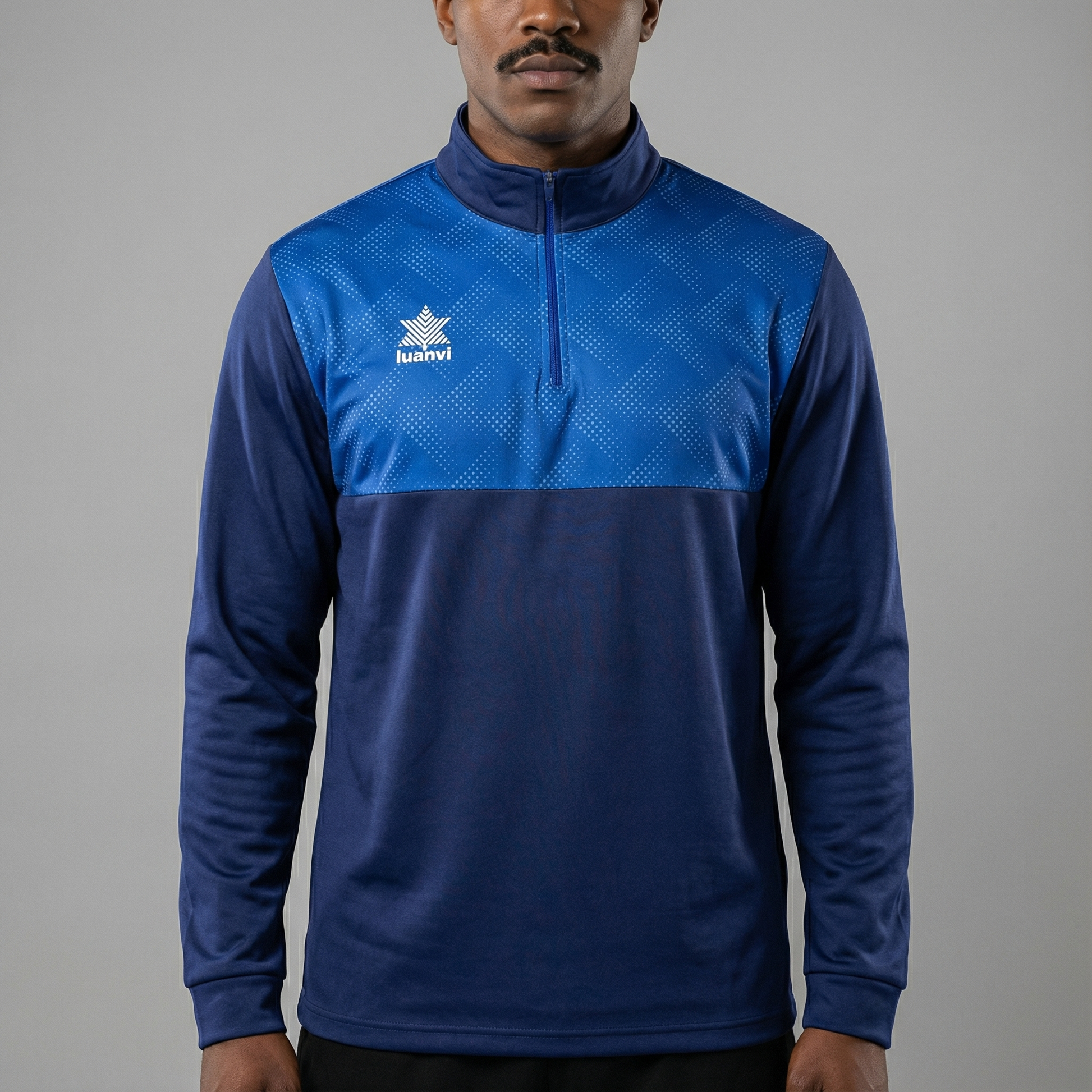 Sudadera técnica Luanvi MIAMI, pensada para entrenar con estilo cuando refresca. Su diseño con media cremallera y panel superior estampado le da un aspecto muy moderno, perfecto para calentamientos, banquillo o para el día a día del equipo.