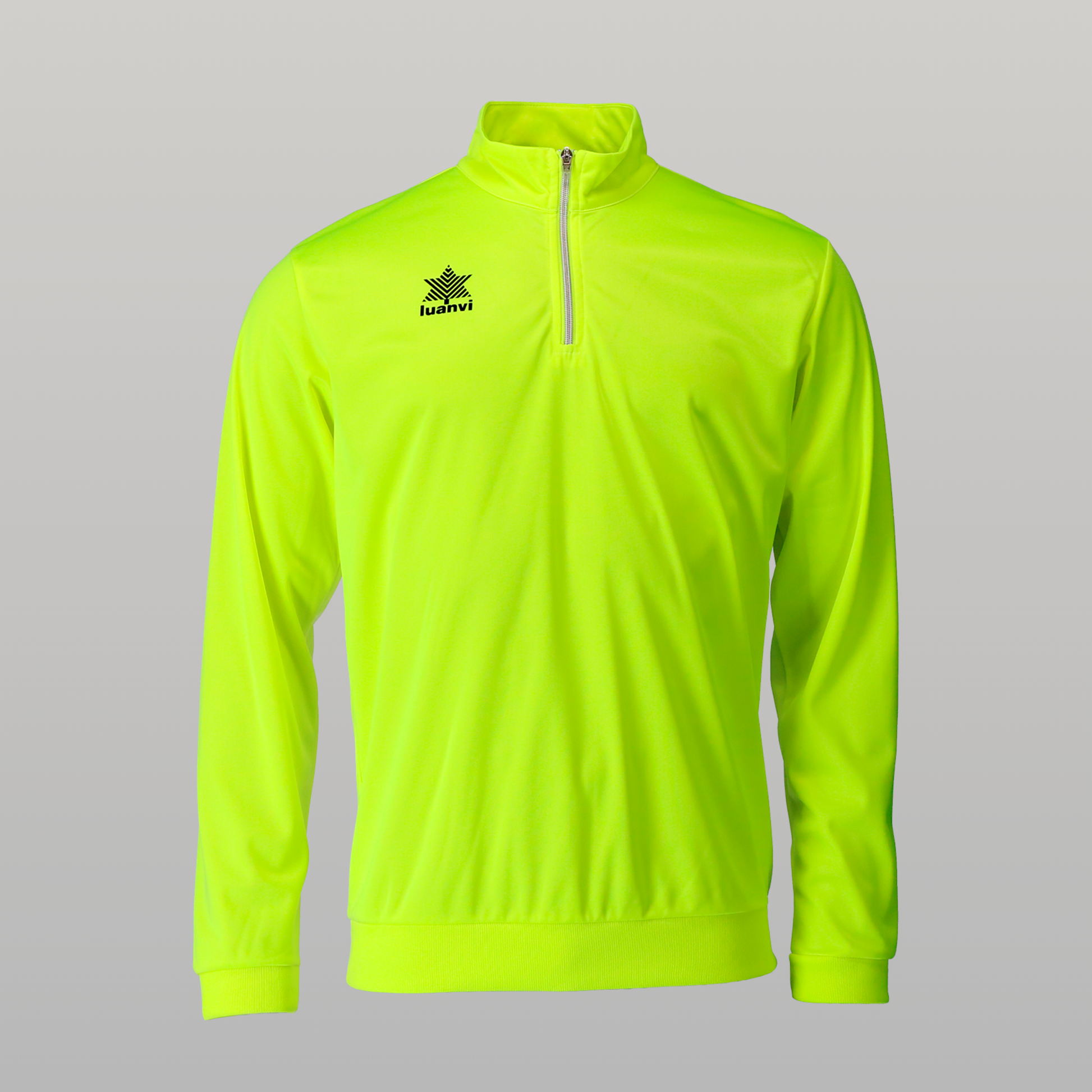 Sudadera de entrenamiento Luanvi POL, perfecta para calentamientos, sesiones de entreno y para el día a día del equipo. Su diseño con media cremallera y cuello alto ofrece un extra de protección cuando hace frío, permitiendo regular la ventilación con un simple gesto.