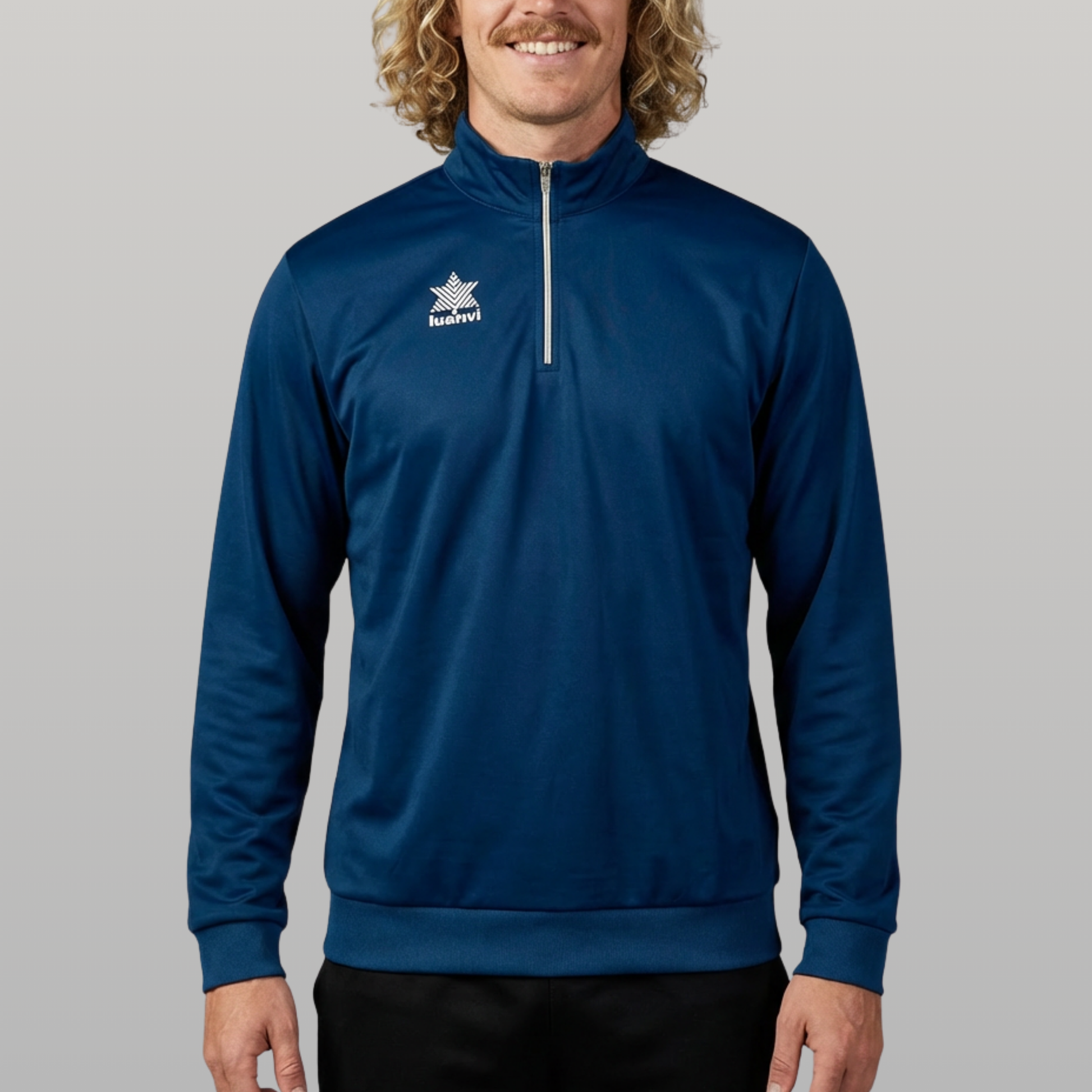 Sudadera de entrenamiento Luanvi POL, perfecta para calentamientos, sesiones de entreno y para el día a día del equipo. Su diseño con media cremallera y cuello alto ofrece un extra de protección cuando hace frío, permitiendo regular la ventilación con un simple gesto.